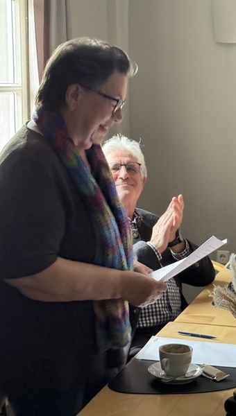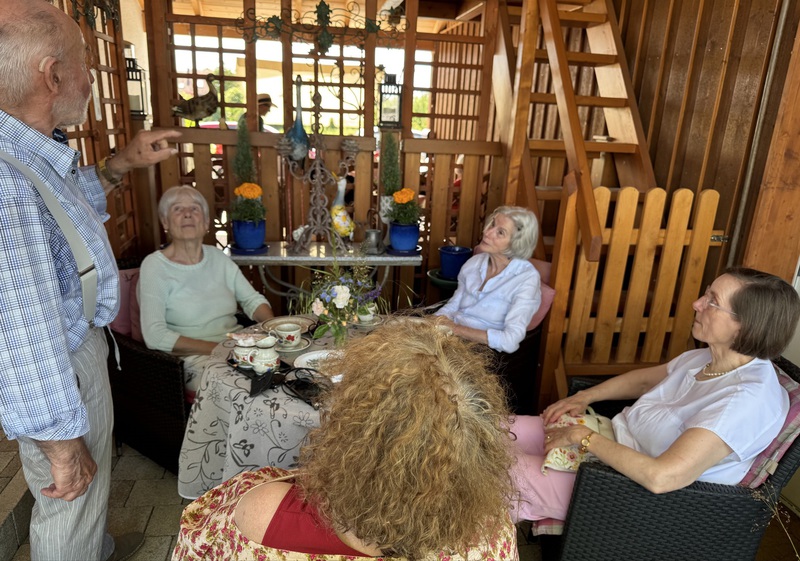 Bei leckerem Kuchen und Getränken im Landcafé Wassmer im Blumhof in Stockach trafen sich die Rosenfreunde Bodensee ziemlich „rosig behütet“ nach dem „Winterschlaf“ zum Saisonstart ins Rosenjahr 2025 zu netten Gesprächen und viel Vorfreude auf das kommende Gartenjahr.