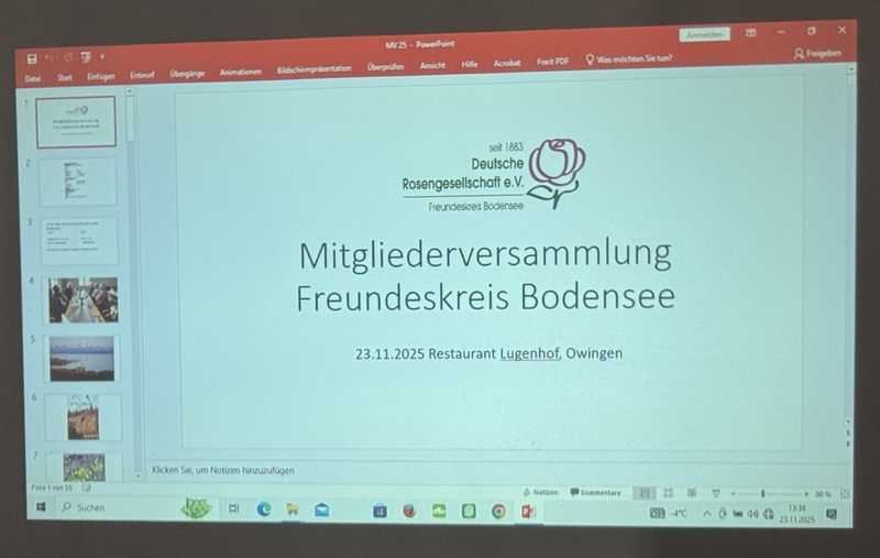 Unsere Präsdentin von der Deutschen Rosengesellschaft Dr. Renate Neumann-Schäfer erzählte uns im Raum "Meersburg" im Auto- und Traktormuseum in Uhldinge-Mühlhofen etwas über "Rosengärten damals und heute".